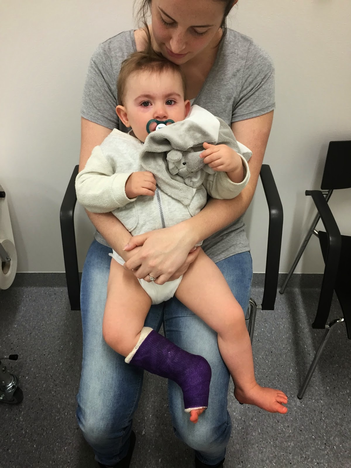 Emma was such a champ! She kept surprising us how good she was doing... waving to all the doctors, nurses, and other patients. Until she had her cast put on her, she was completely happy all day! She was not happy at all putting the cast on, but after the doctors gave her some medicine she calmed down, and it was so nice to have my happy baby back! I'm just glad to see she's not in pain anymore. Emma doesn't walk on her cast, but oddly enough she has finally learned how to crawl! I guess she needed a cast to help her crawl instead of her usual scoot ;)
